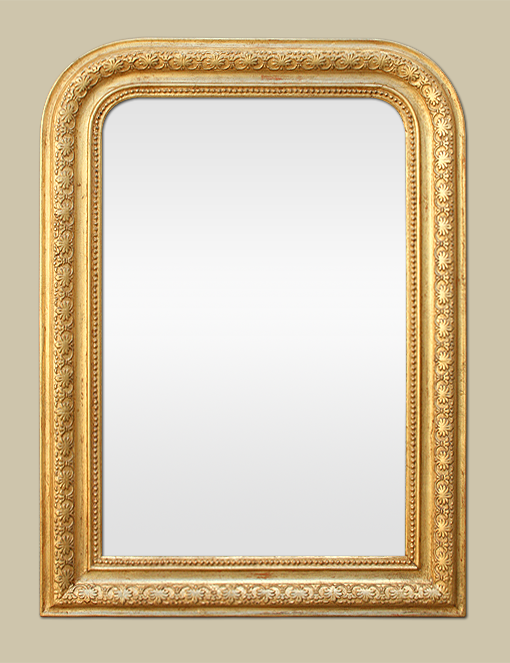 à décor de feuilles stylisées et rangée de perles. Redorure à la feuille imitation or.